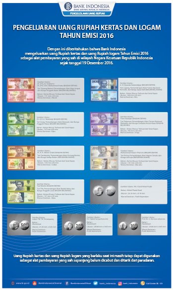 Serta gambar pahlawan nasional perempuan dari Aceh, Tjut Meutia pada yang kertas Rp 1.000, gambar Mr I Gusti Ketut Pudja pada uang logam Rp BI Menerbitkan Sebelas Uang Rupiah TE 2016, 7 Pecahan Uang Rupiah Kertas dan 4 Pecahan Uang Rupiah Logam1.000.