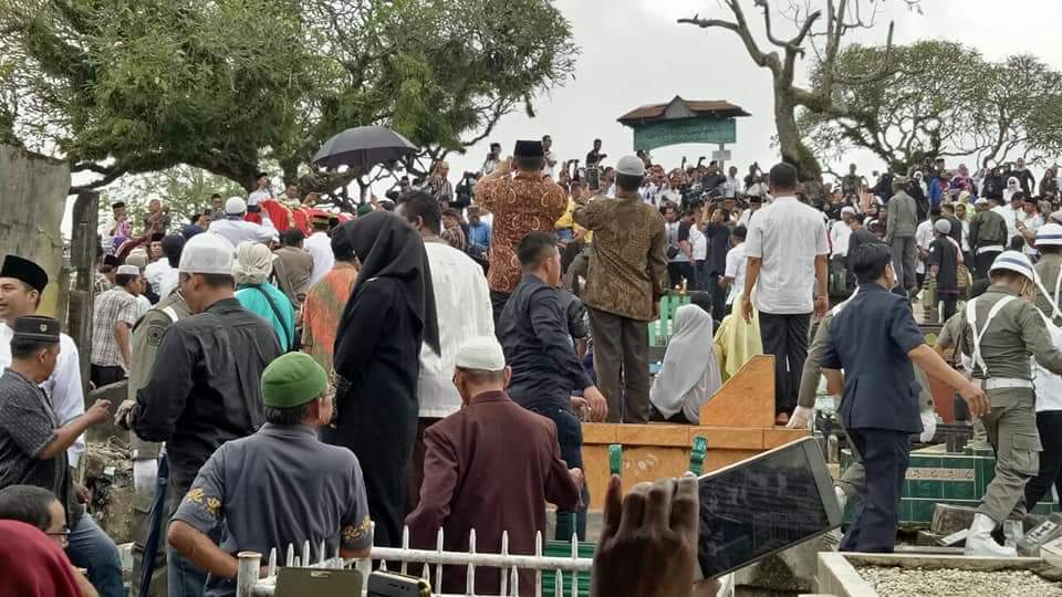 Jenazah tiba di pemakaman sekitar pukul 10,40 Wita dan langsung menuju liang lahat untuk prosesi pemakaman. Jalan gang yang sempit terus penuh sesak oleh pelayat yang ingin mendekat ke area pemakaman.